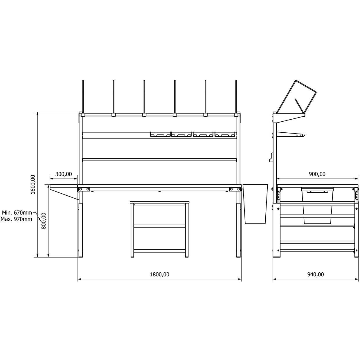 - Yükseklik Ayarı: Manuel olarak ayarlanabilir. Tabla yüksekliği zeminden 670 mm ile 970 mm arasında ayarlanabilir
