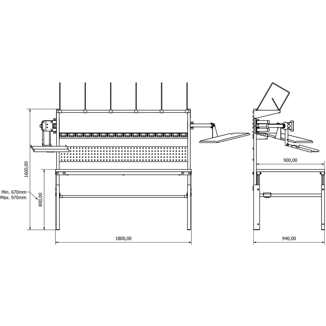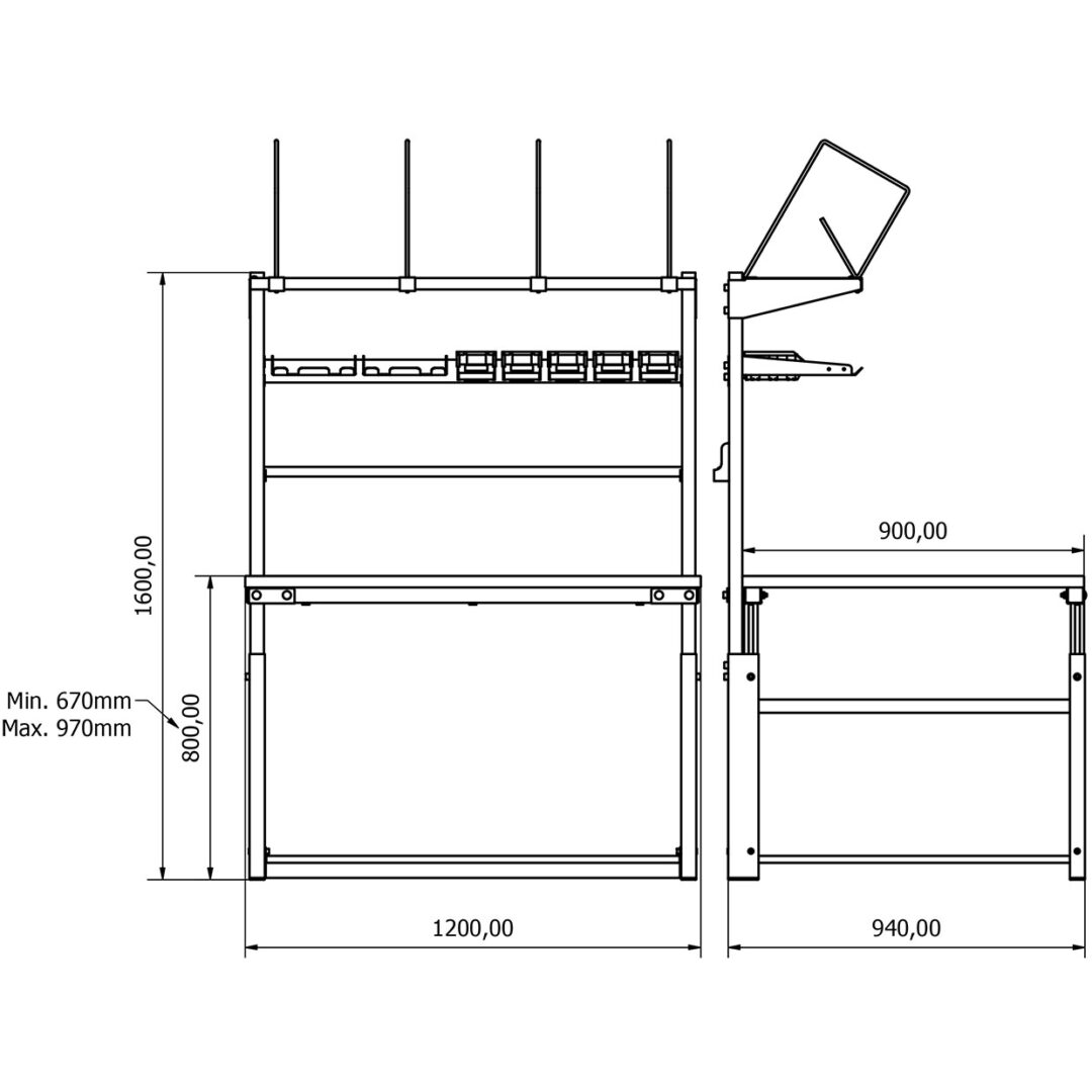 • Yükseklik Ayarı: Manuel olarak ayarlanabilir. Tabla yüksekliği zeminden 670 mm ile 970 mm arasında ayarlanabilir