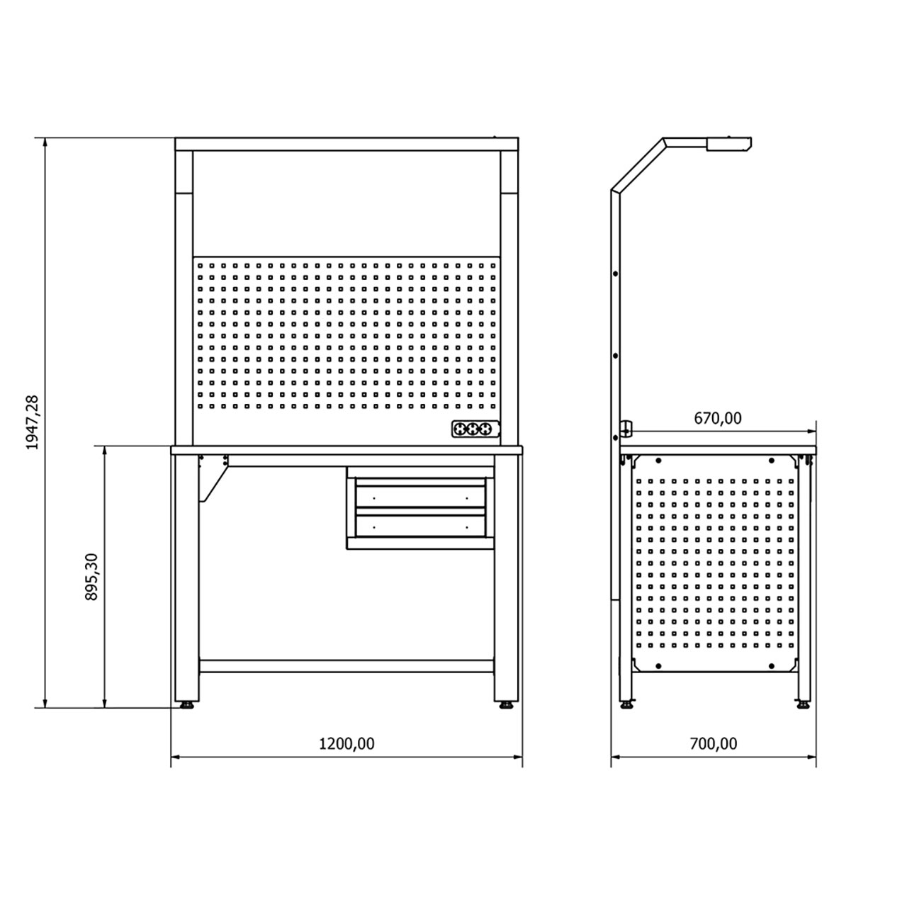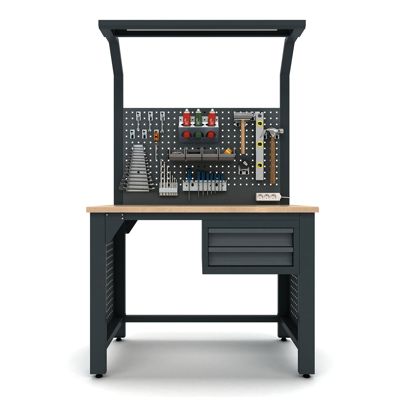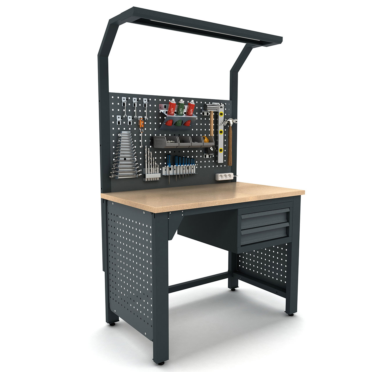 Tezgahın özellikleri arasında, H675xW1050xD30mm ölçülerinde delikli pano ve W1200xD670 tablası (30 mm HAM MDF) bulunmaktadır. Bu ölçüler, kullanıcıların iş parçalarını düzenli bir şekilde saklamalarına ve geniş bir çalışma alanında rahatça çalışmalarına imkan tanır. LED aydınlatma (Led Armatür 900) özelliği, kullanıcıların işlerini net bir şekilde görmelerini sağlar ve çalışma verimliliğini artırır.