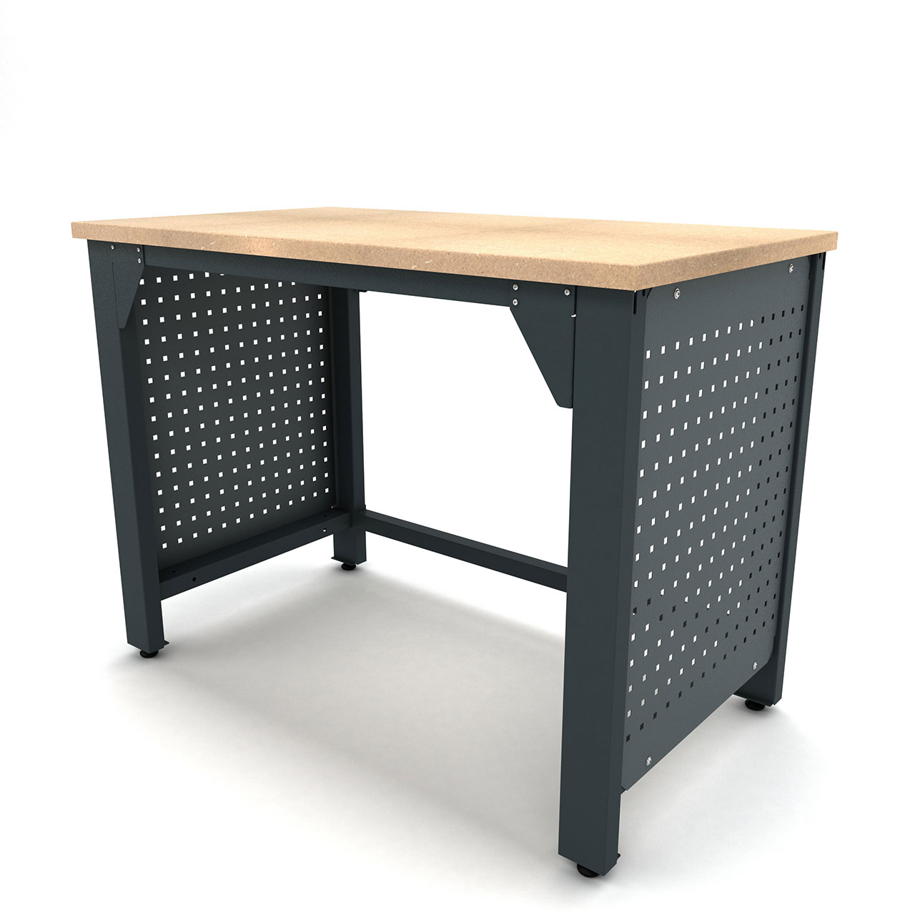 DKP ve HRP sac malzemelerden üretilmiş olan tezgah, dayanıklı ve uzun ömürlü bir kullanım sağlar. Elektrostatik toz boya ile kaplanmış olup, kullanıcıların tercihine göre RAL7016 (Antrasit gri) veya RAL7011 (Gri) renk seçenekleri sunar.
