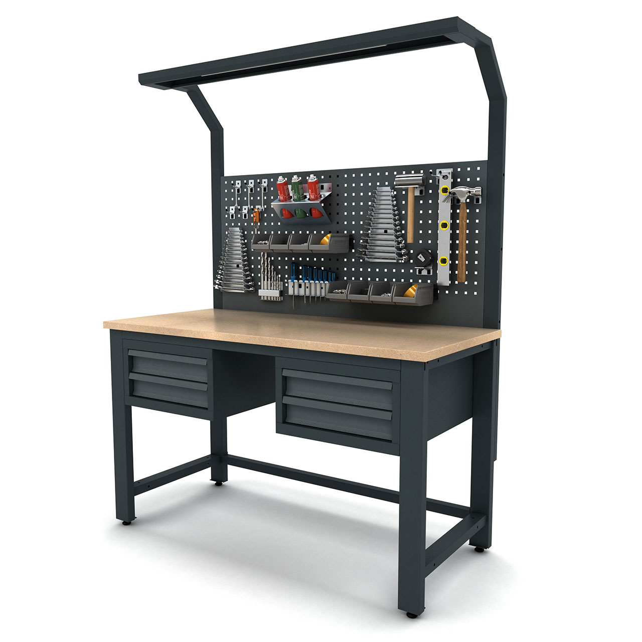 Tezgahın temel özellikleri arasında, H675xW1350xD30mm ölçülerinde delikli pano ve W1500xD670 mm boyutlarında 30 mm kalınlığında HAM MDF tabla bulunmaktadır. Bu özellikler, kullanıcıların geniş bir çalışma alanında rahatça çalışmalarına imkan tanır. LED aydınlatma (Led Armatür 900) özelliği, kullanıcıların işlerini net bir şekilde görmelerini sağlar ve çalışma verimliliğini artırır.