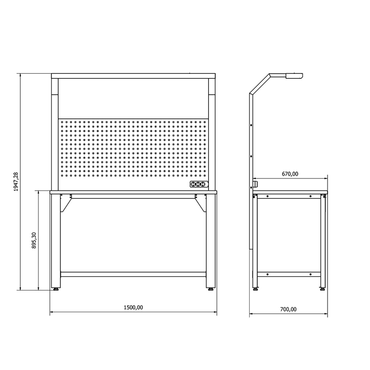 BD.36.80.13 Ecoline Çalışma Tezgahı, geniş çalışma alanı ve sağlam yapısıyla küçük, orta ve büyük ölçekli işletmeler, atölyeler ve oto servisleri için ideal bir seçenektir. Tezgah, 1950x1500x700 mm boyutlarında olup, aksesuarlar hariç 63 kg ağırlığındadır.
