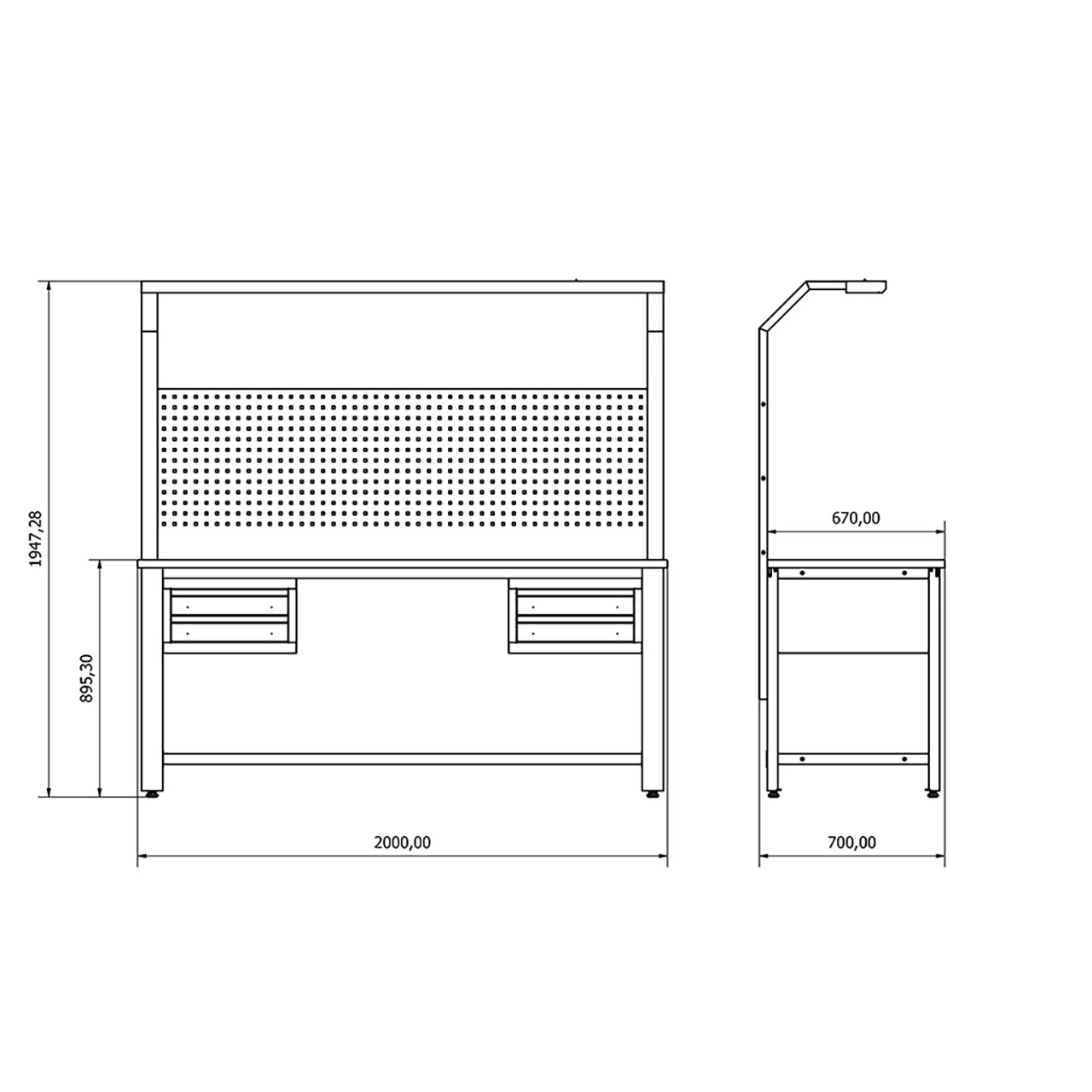 BD.36.80.21 Ecoline Çalışma Tezgahı, geniş çalışma alanı ve sağlam yapısıyla küçük, orta ve büyük ölçekli işletmeler, atölyeler ve oto servisleri için ideal bir seçenektir. Tezgah, 1950x2000x700 mm boyutlarında olup, aksesuarlar hariç 110 kg ağırlığındadır.