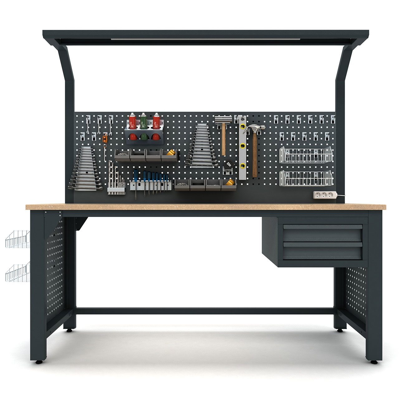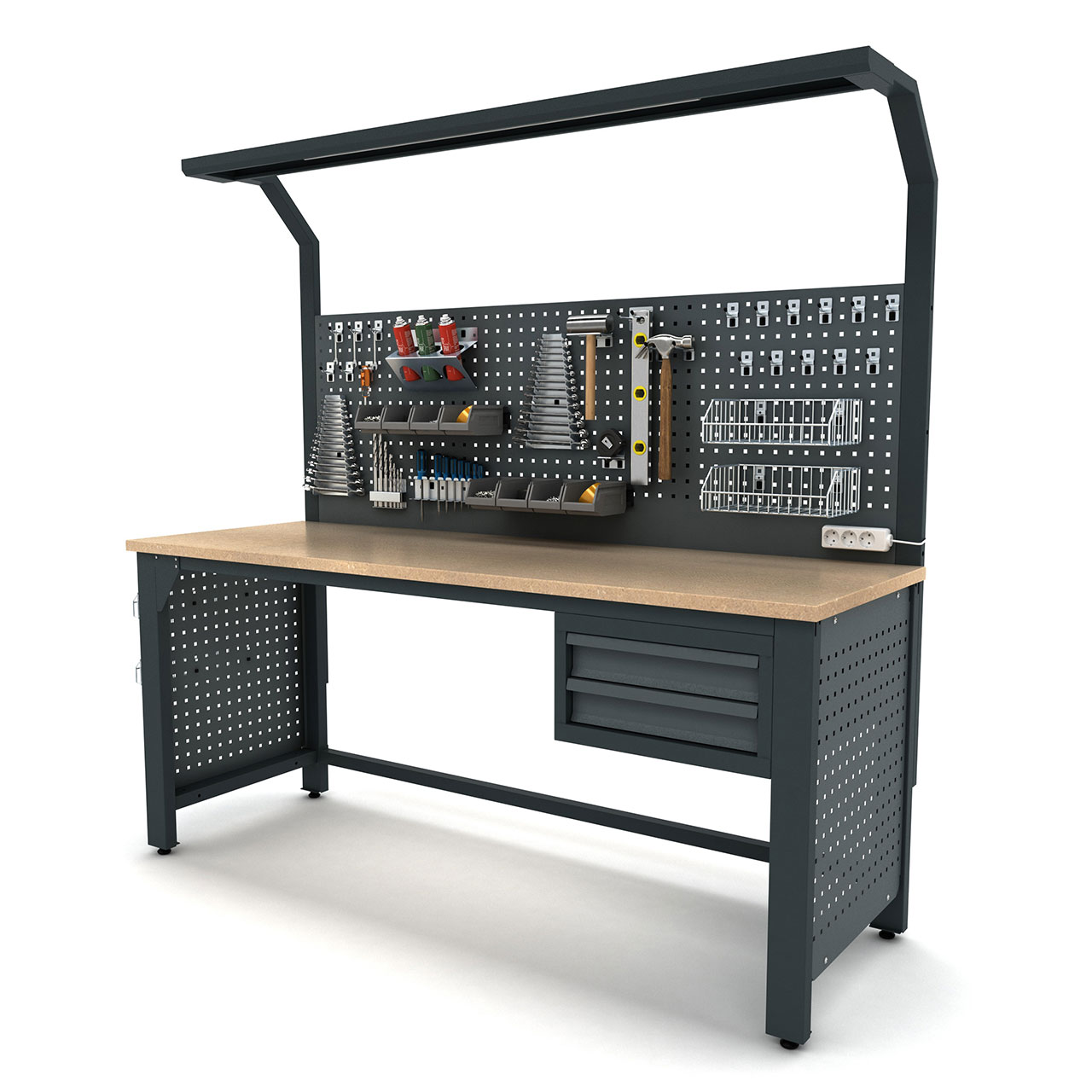 Tezgah, opsionel olarak priz eklemek veya çıkarmak için de uygun bir yapıya sahiptir, böylece kullanıcılar elektrikli aletlerini kolayca bağlayabilir veya çıkarabilirler.